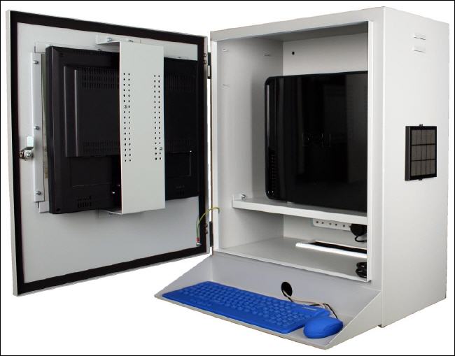 Ventajas * Alta Protección - AIT7630 le protege contra el polvo, suciedad, salpicaduras de líquidos, impactos y por supuesto contra robo y sabotaje. * IP54 - AIT7630 le ofrece un grado de protección IP54. * Flexibilidad - AIT7630 le ofrece más flexibilidad que un PC Industrial, le ahorra tiempo y dinero en reparaciones, actualizaciones, tiempos de espera por inactividad a causa de averías y reducir su factura en técnicos cualificados. * Alta seguridad - Gracias a su chapa de acero templado de alta calidad y acabado epoxi junto con su cerradura de seguridad AIT7630 le garantiza totalmente contra ataques. * Tecnología - AIT7630 le permite ser totalmente independiente y no depender de ningún software concreto ni hardware especial como PC´s Indutriales. Siempre podrá instalar la última tecnología tanto en hardware como software. * Larga vida a los equipos instalados - AIT7630 es una alternativa más económica que la instalación de PC´s industriales además de la gran ventaja de disponer de un armario para toda la vida gracias a su capacidad de reutilización. * Total garantía - Garantía de 5 años en todas las partes mecánicas además de una experiencia de más de 20 años.