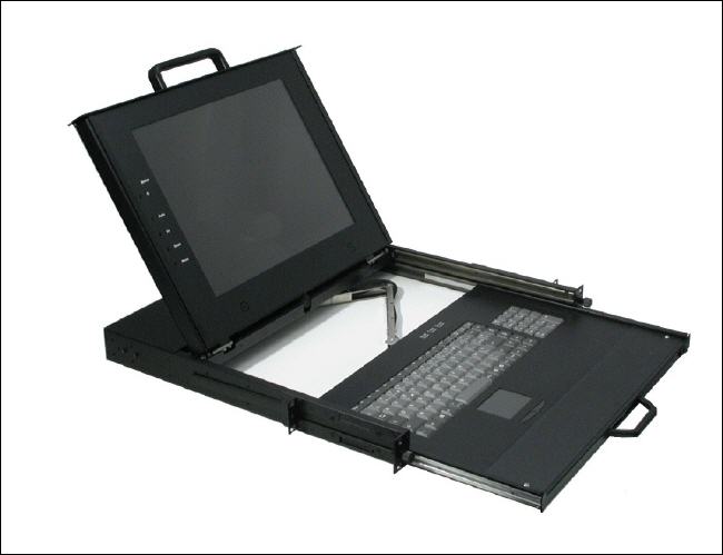 * LCD y KVM de 2 usuarios 32 servidores en 1 U de rack. |