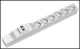 MCB - Interruptor Magneto-Térmico Máx. 16A 230V~ Entrada de alimentación: 2 m cable 3 x 1,5 mm; tipo H05W-F 3G de color negro con clavija moldeada Schuko. Tomas de Salida: Tipo UTE con ángulo de conexión de 35º color gris claro RAL7035. Protección: Interruptor magneto-térmico 16 A 2 polos, curva B. Perfil de aluminio color plata. Tapas laterales remachadas y cable de alimentación sellado.